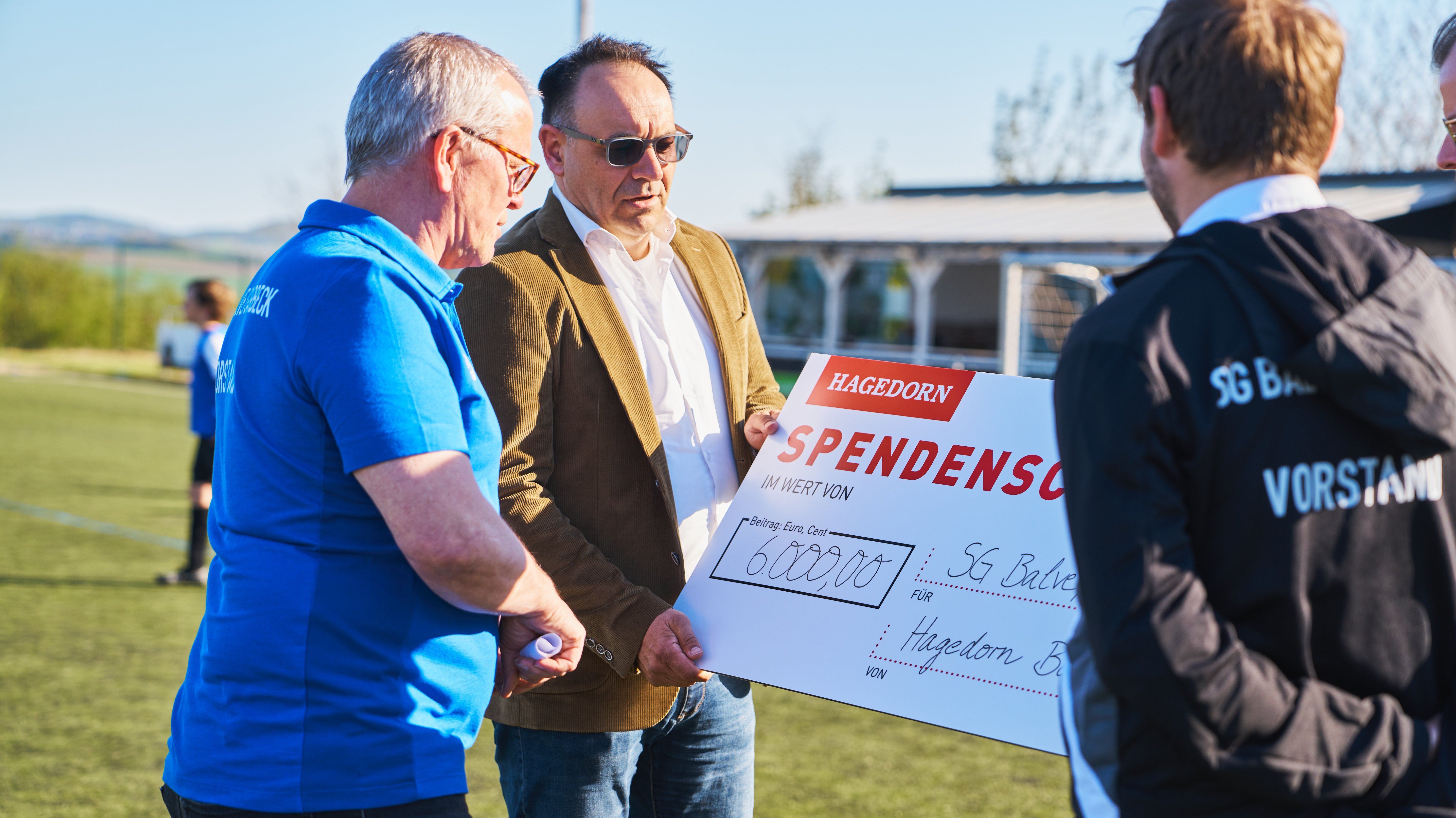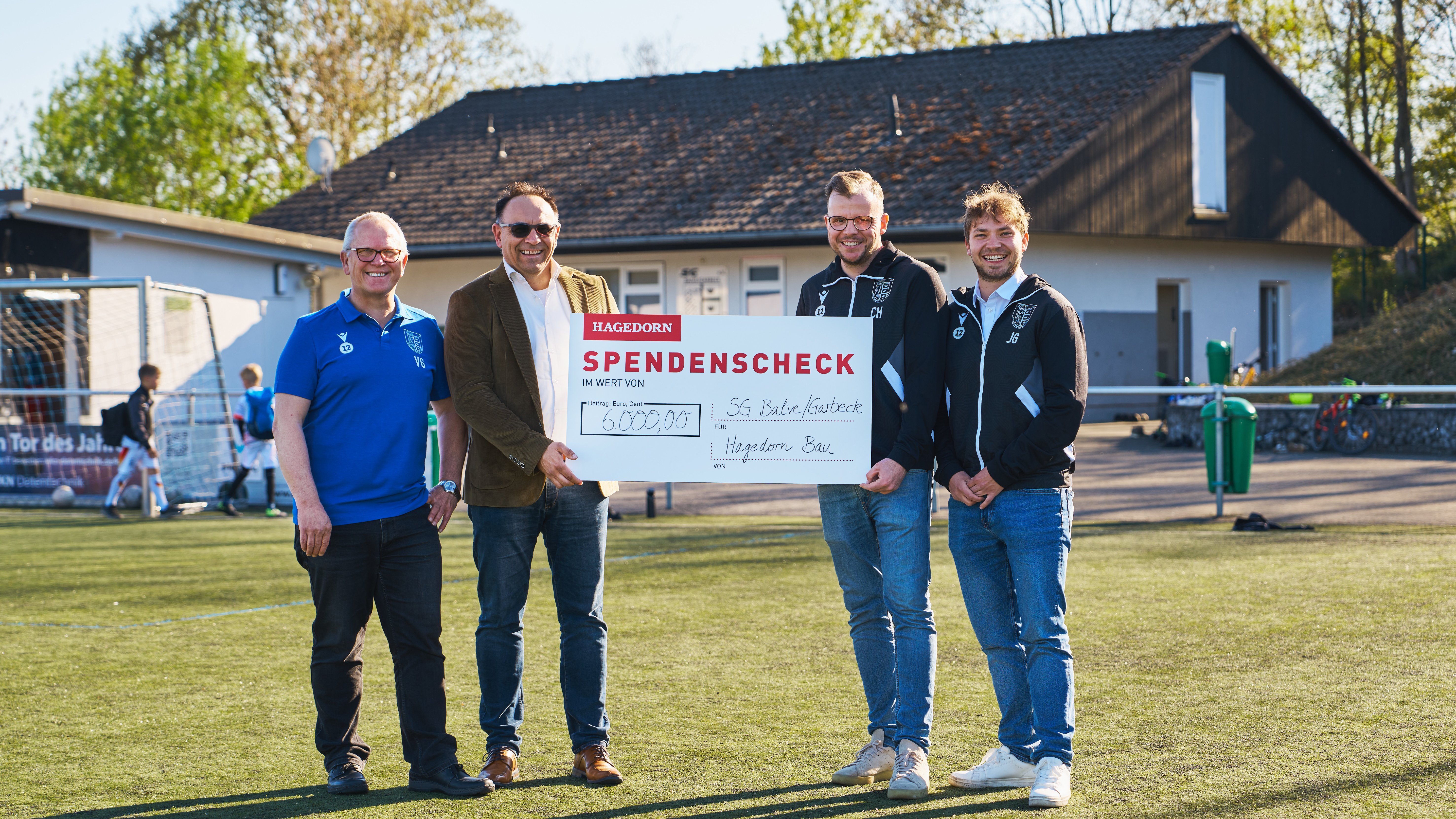 Die Hagedorn Bau GmbH hat dem Fußballverein SG Balve/Garbeck eine Spende in Höhe von 6.000 Euro übergeben. Die Mittel fließen in die energetische Sanierung des Umkleidegebäudes am Sportplatz „Am Holloh" in Garbeck – mit dem Ziel, Energieverbrauch und Betriebskosten dauerhaft zu senken.