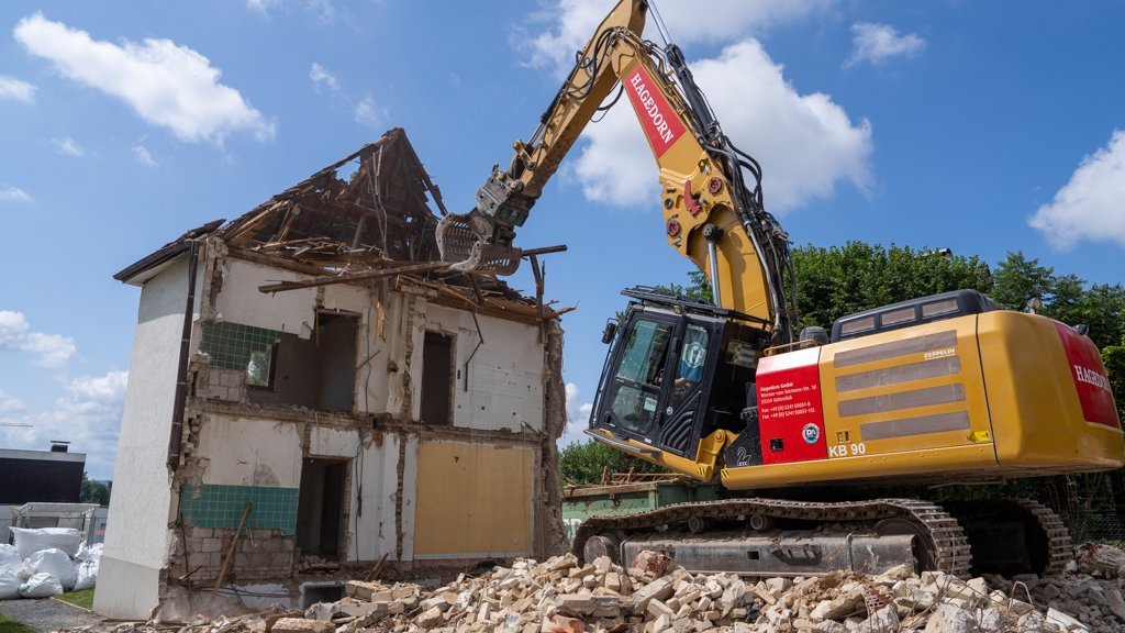 Im Rahmen meiner Ausbildung durfte ich ein spannendes Abbruchprojekt in Bielefeld übernehmen. Dabei ging es um den Rückbau eines Zweifamilienhauses, das wir innerhalb von eineinhalb Wochen vollständig zurückgebaut haben. Gearbeitet wurde hauptsächlich mit einem CAT 336F.